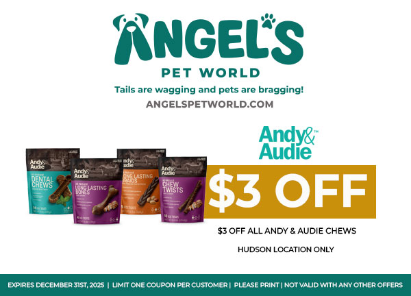 Andy & Audie at Angel’s Pet World your local pet supply store in Hudson and River Falls. Shop local and save at Angel’s Pet World.