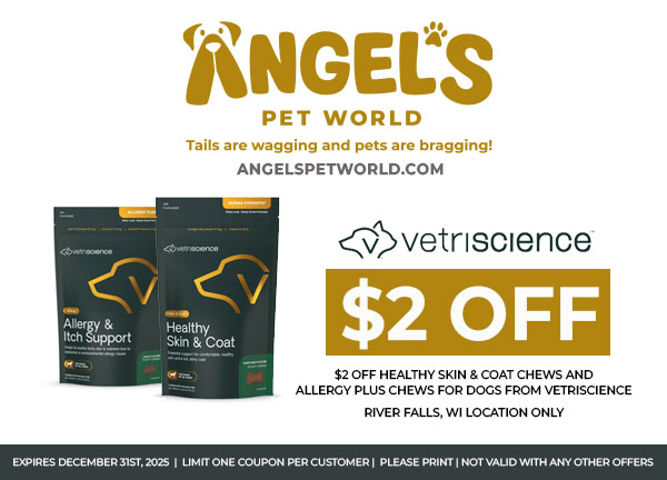 VetriScience at Angel’s Pet World your local pet supply store in Hudson and River Falls. Shop local and save at Angel’s Pet World.