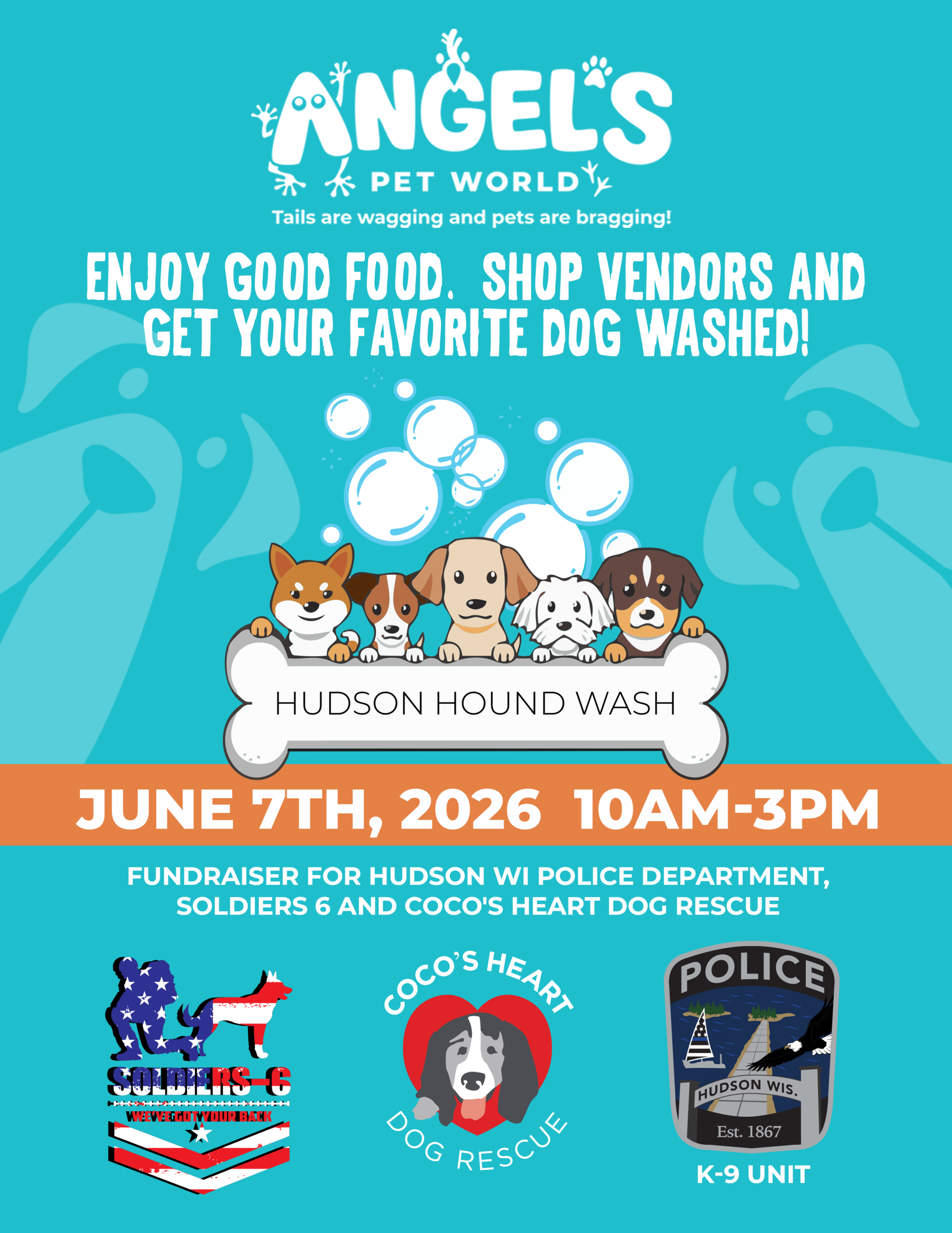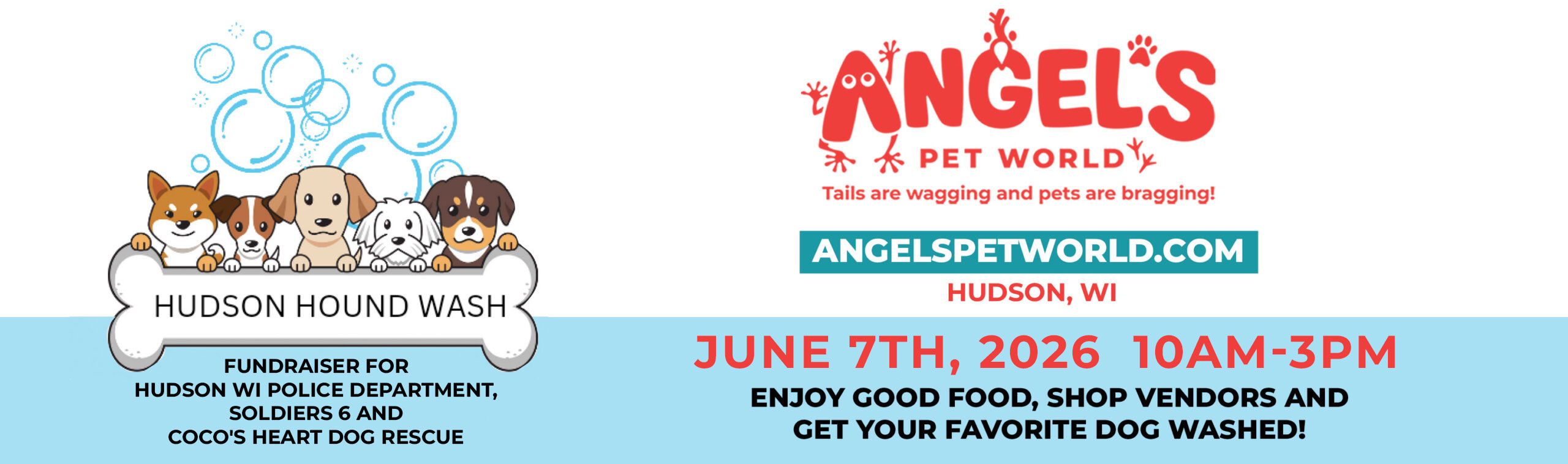 Join us for our Annual Hudson Hound Wash on June 7th, 2026 from 10AM-3PM at Angel’s Pet World in Hudson, WI