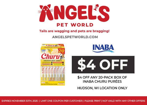 We appreciate your choice to shop local at Angel’s Pet World in Hudson, WI and River Falls, WI.  Shop local online at shopangelspetworld.com