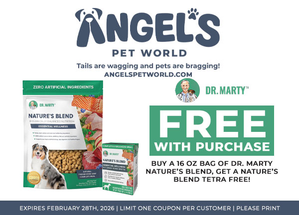 Buy a 16 oz bag of Dr. Marty Nature’s Blend, get a Nature’s blend tetra Free!