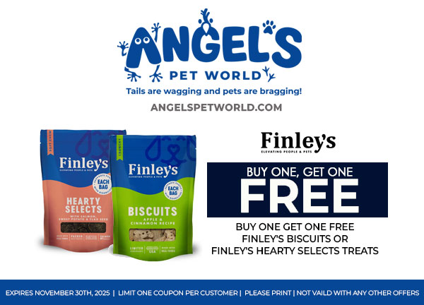 Finley's at Angel’s Pet World your local pet supply store in Hudson and River Falls. Shop local and save at Angel’s Pet World.
