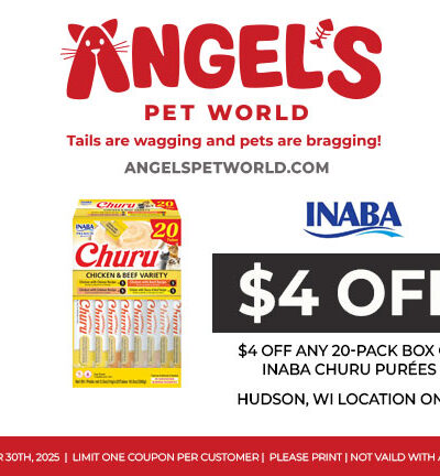 We appreciate your choice to shop local at Angel’s Pet World in Hudson, WI and River Falls, WI