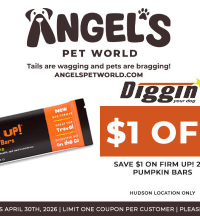We appreciate your choice to shop local at Angel’s Pet World in Hudson, WI and River Falls, WI.  Shop local online at shopangelspetworld.com